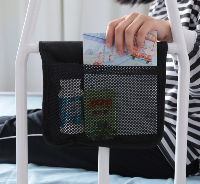 The handrail part of this bedrail is secured into position by a safety belt. This product can benefit anyone who finds it difficult to move off the bed.