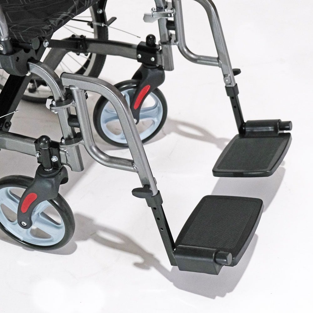 – Convenient Swing Away Footrests: Featuring swing-away footrests, this wheelchair offers utmost convenience during transfers and comfortable seating. Users can easily swing the footrests to the side, facilitating easy entry and exit from the wheelchair or accommodating different seating positions.
