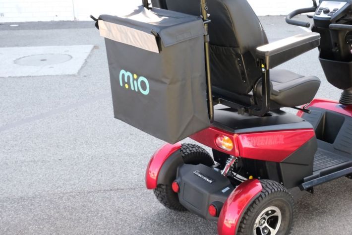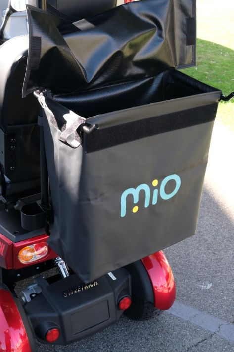 Rear shopping bag & mounting frame includes walking frame carrier and walking stick holder.