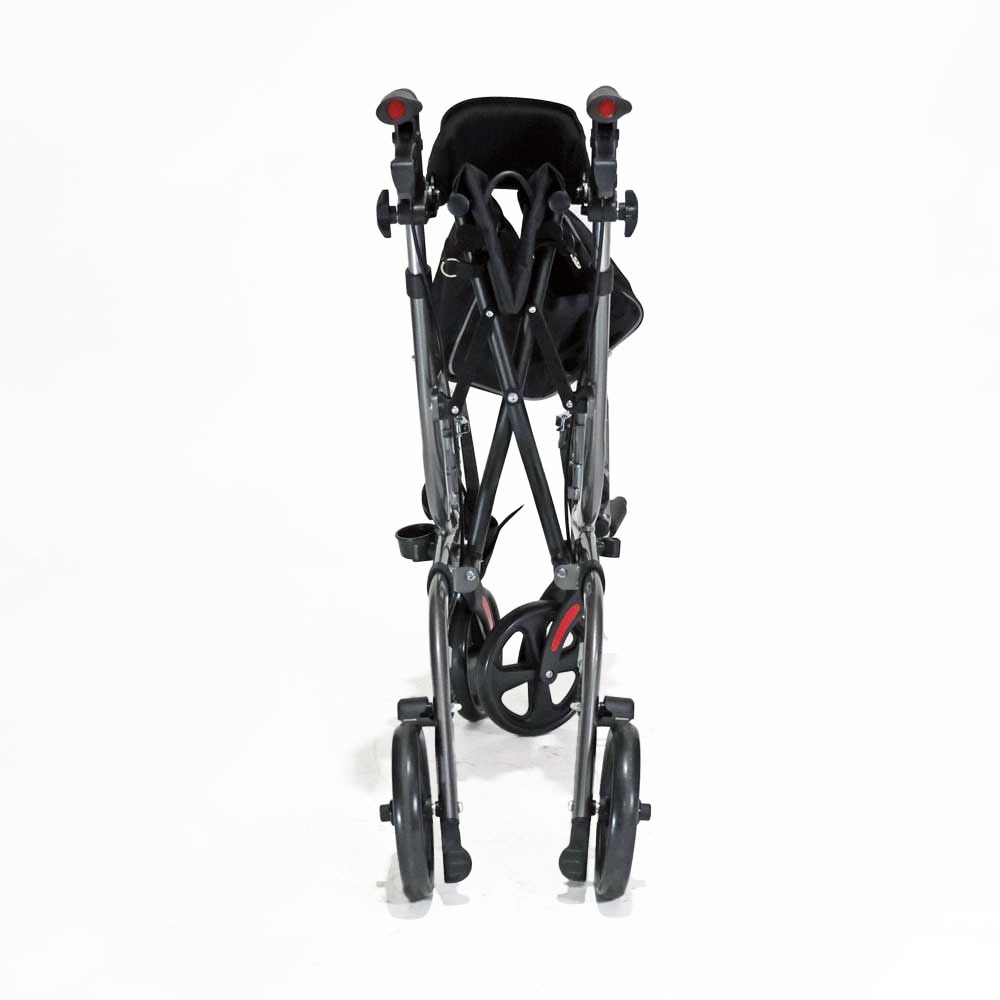 This rollator is unique in the fact that it also doubles up as a wheelchair. Simply bring forward the footplates, take a seat, rest your feet and let your partner push you around. The Multi-Tasker comes with an under-seat storage bag to carry your personal items. When you’re ready to go home, pick up the Multi-Tasker by the handle located on the seat, as the walker will fold itself together all on its own.
